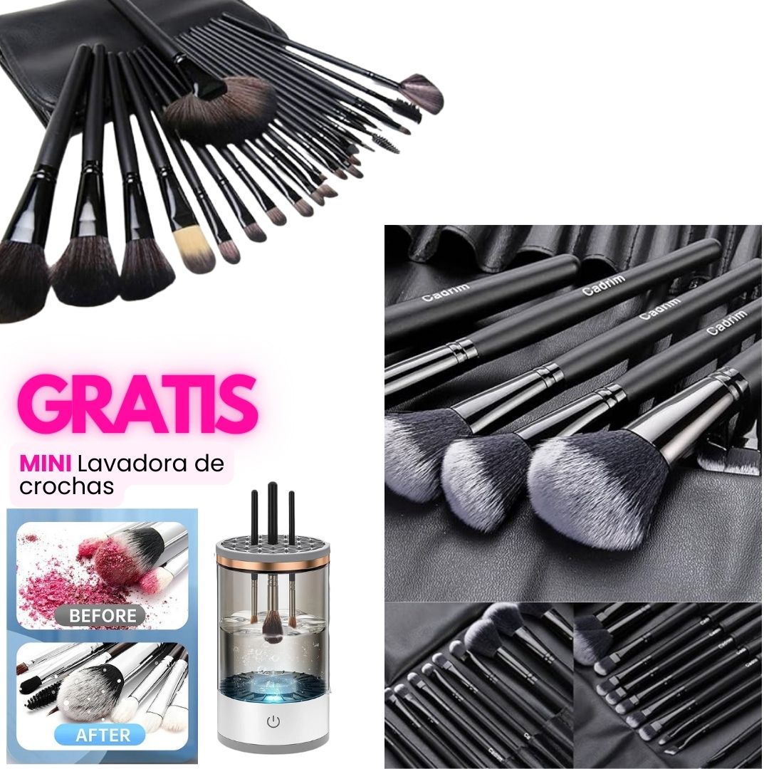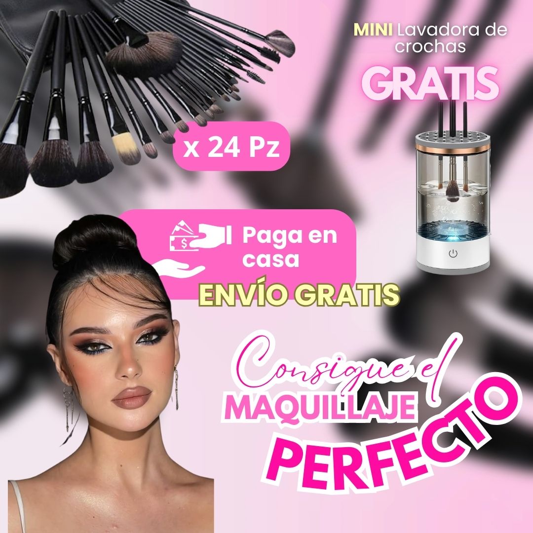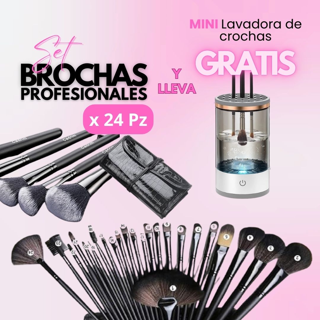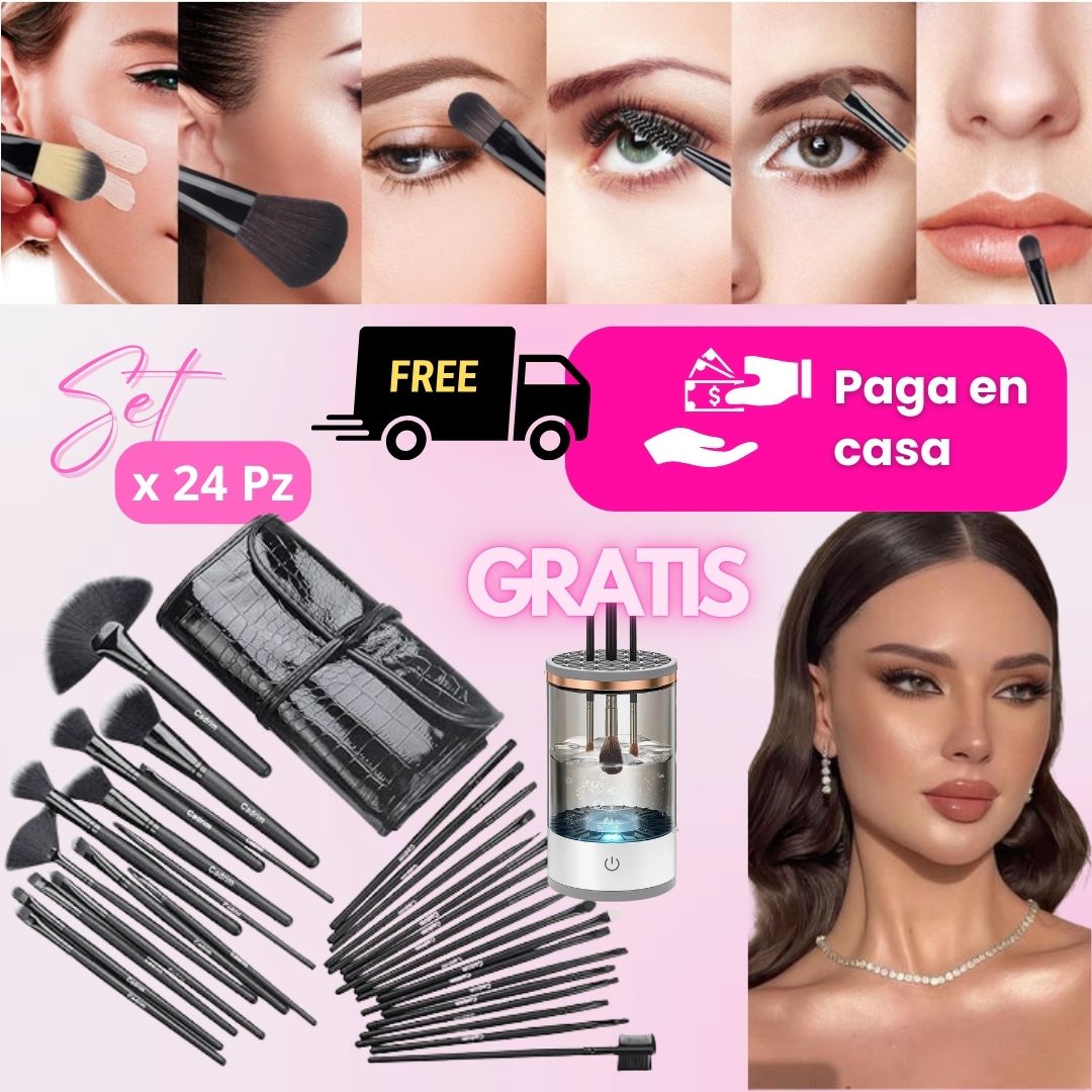 ProBrush™ - Set x 24 Brochas Profesionales con Estuche de Cuerina + Lavadora de Brochas GRATIS"